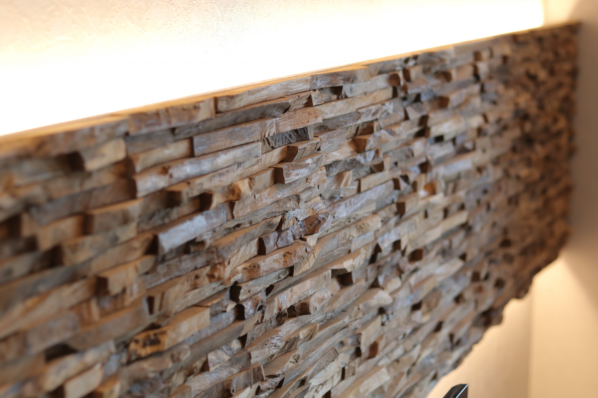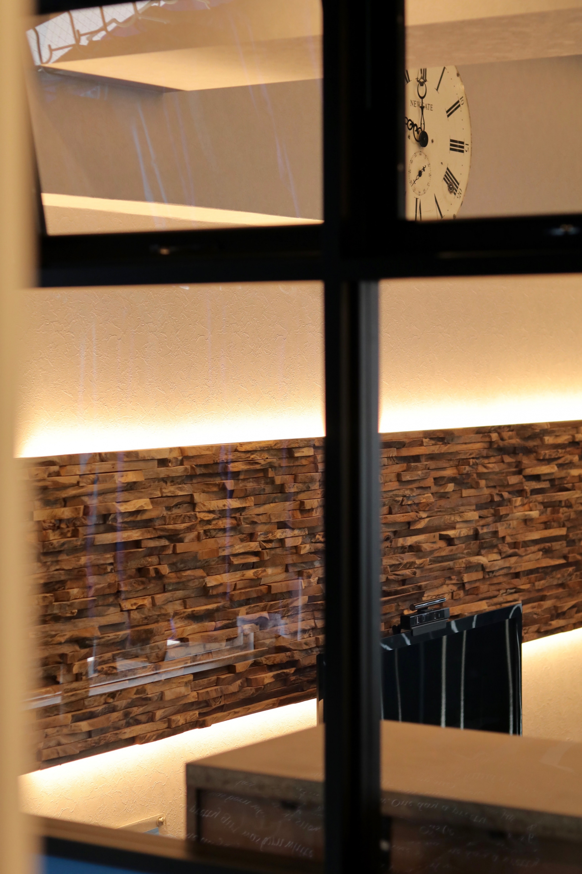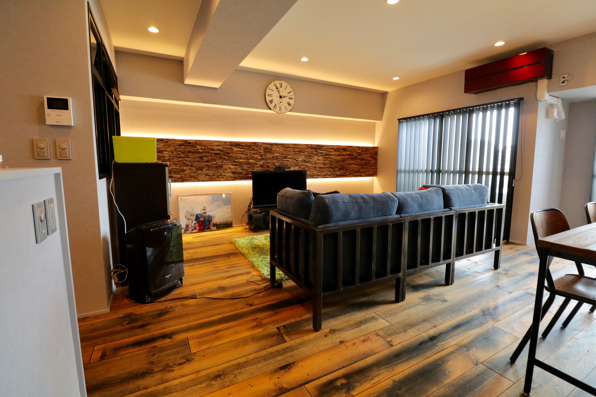 リビングのウッドパネルも存在感を放ち、アクセントとして◎。